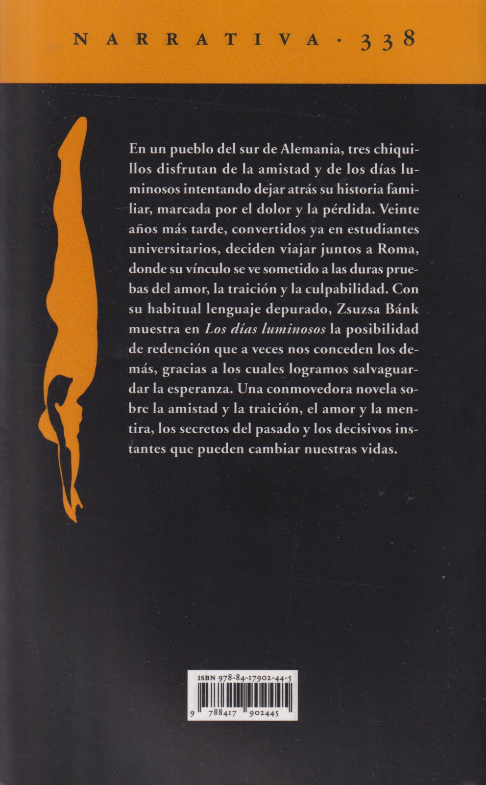 En un pueblo del sur de Alemania, tres chiquillos disfrutan de la amistad y de los días luminosos intentando dejar atrás su historia familiar, marcada por el dolor y la pérdida. Veinte anos más tarde, convertidos ya en estudiantes universitarios, deciden viajar juntos a Roma, donde su vínculo se ve sometido a las duras pruebas del amor, la traición y la culpabilidad. Con su habitual lenguaje depurado, Zsuzsa Bánk muestra en Los días luminosos la posibilidad de redención que a veces nos conceden los demás, gracias a los cuales logramos salvaguardar la esperanza. Una conmovedora novela sobre la amistad y la traición, el amor y la mentira, los secretos del pasado y los decisivos instantes que pueden cambiar nuestras vidas.