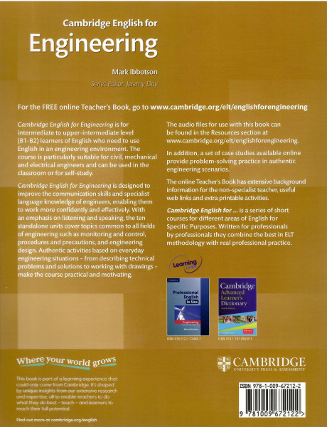 Cambridge English for Engineering develops the communication skills and specialist English language knowledge of engineering professionals, enabling them to communicate more confidently and effectively with colleagues and customers.