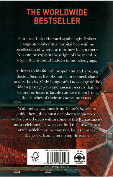 A threat to his life will propel him and a young doctor, Sienna Brooks, into a breakneck chase across the city. Only Langdon’s knowledge of the hidden passageways and ancient secrets that lie behind its historic facade can save them from the clutches oftheir unknown pursuers.With only a few lines from Dante’s Inferno to guide them, they must decipher a sequence of codes buried deep within some of the Renaissance’s most celebrated artworks to find the answers to a puzzle which may, or may not, helpthem save the world from a terrifying threat…
