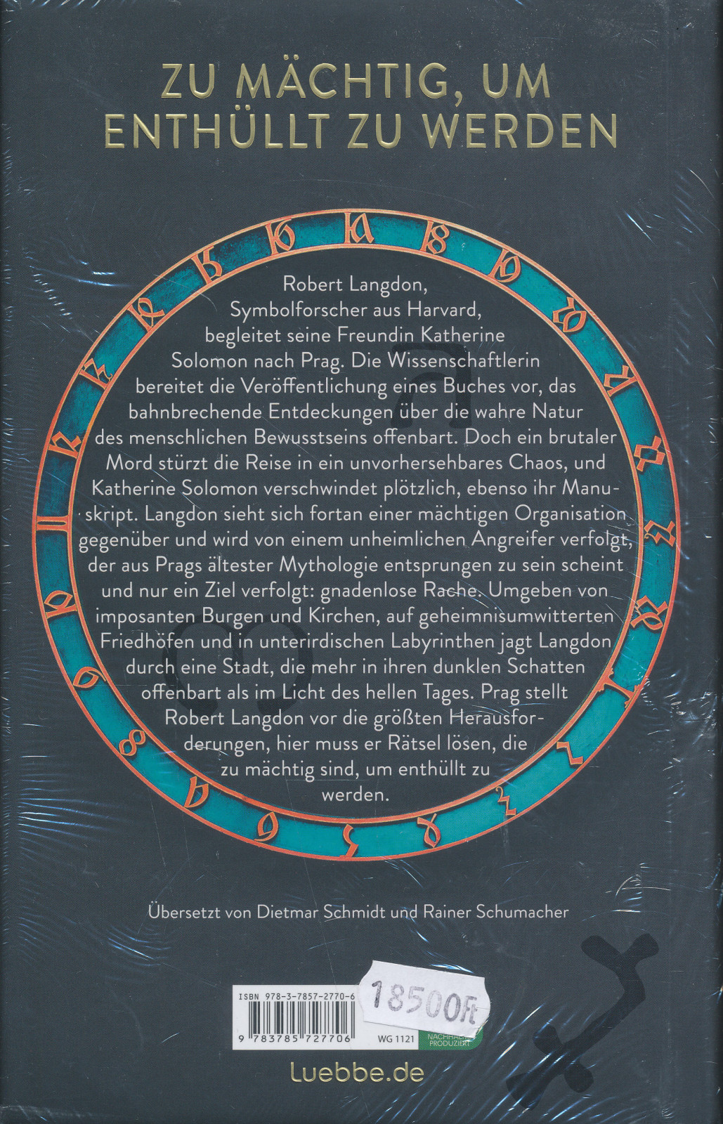 Robert Langdon, Symbolforscher aus Harvard, begleitet seine Freundin Katherine Solomon nach Prag. Katherine bereitet die Veröffentlichung eines Buches vor, das bahnbrechende Entdeckungen über die wahre Natur des menschlichen Bewusstseins offenbart. Dochein brutaler Mord stürzt die Reise in ein unvorhersehbares Chaos, und Katherine verschwindet plötzlich, ebenso ihr Manuskript. Langdon sieht sich fortan einer mächtigen Organisation gegenüber und wird von einem unheimlichen Angreifer verfolgt, der aus Prags ältester Mythologie entsprungen zu sein scheint und nur ein Ziel verfolgt: gnadenlose Rache.