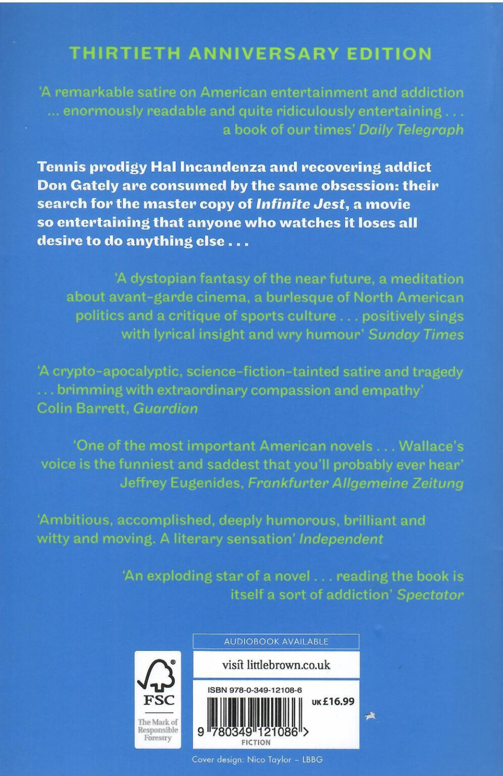 Somewhere in the not-so-distant future the residents of Ennet House, a Boston halfway house for recovering addicts, and students at the nearby Enfield Tennis Academy are ensnared in the search for the master copy of INFINITE JEST, a movie said to be so dangerously entertaining its viewers become entranced and expire in a state of catatonic bliss . . .