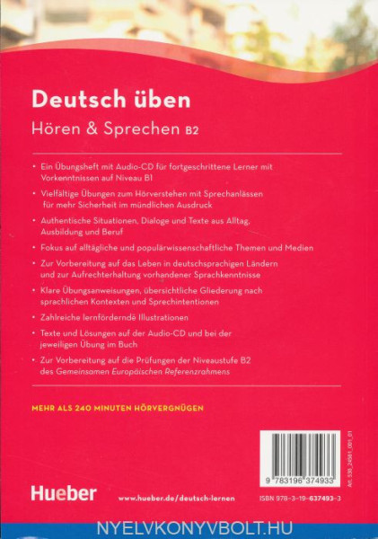 Hören & Sprechen B2 bietet ein gezieltes Training durch Übungen zum Hörverständnis sowie Sprechübungen zu alltäglichen Themen, Situationen in Beruf und populärwissenschaftlichen Themen.