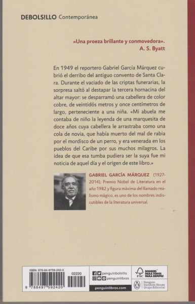 El 26 de octubre de 1949 el reportero Gabriel García Márquez fue enviado al antiguo convento de Santa Clara, que iba a ser demolido para edificar sobre él un hotel de cinco estrellas, a presenciar el vaciado de las criptas funerarias y a cubrir la noticia. Se exhumaron los restos de un virrey del Perú y su amante secreta, un obispo, varias abadesas, un bachiller de artes y una marquesa. Pero la sorpresa saltó al destapar la tercera hornacina del altar mayor: se desparramó una cabellera de color cobre, de veintidós metros y once centímetros de largo, perteneciente a una nina. En la lápida apenas se leía el nombre: Sierva María de Todos los Angeles. «Mi abuela me contaba de nino la leyenda de una marquesita de doce anos cuya cabellera le arrastraba comouna cola de novia, que había muerto del mal de rabia por el mordisco de un perro, y era venerada en los pueblos del Caribe por sus muchos milagros. La idea de que esa tumba pudiera ser la suya fue mi noticia de aquel día y el origen de este libro.»