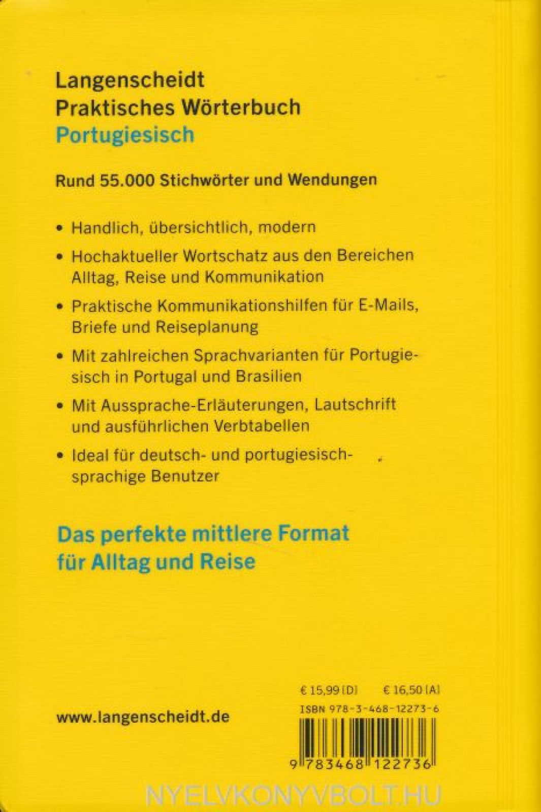 Es erscheint in handlichem Format und bietet einen sorgfältig ausgewählten Wortschatz zu hochaktuellen Themen. Im perfekten und handlichen mittleren Format bietet das Praktische Wörterbuch Portugiesisch einen umfangreichen und modernen Wortschatz für Alltag und Reise. Es enthält rund 55.000 Stichwörter und Wendungen mit besonderem Schwerpunkt auf Alltag, Neue Medien und Kommunikation. Auch der wichtige brasilianische Sprachgebrauch ist enthalten.