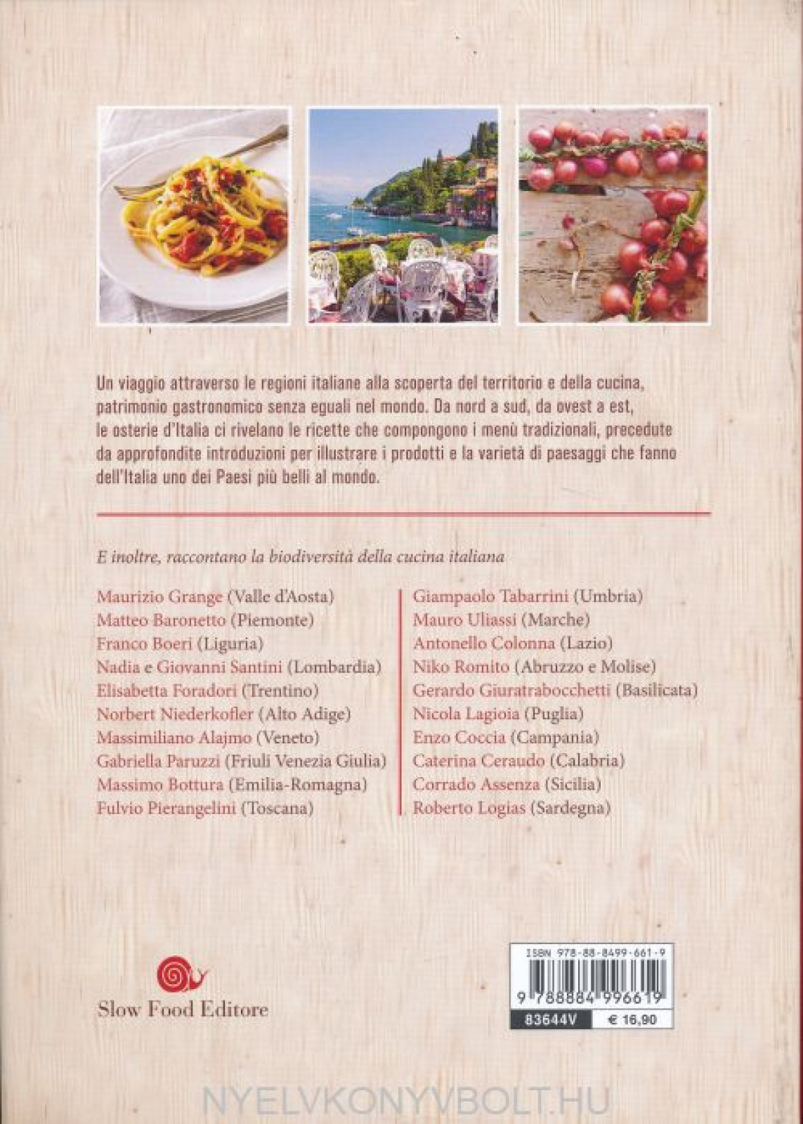 Una nuova edizione di un libro che racconta la straordinaria varieta di culture gastronomiche regionali narrata attraverso i paesaggi, i luoghi di produzione, i volti e le voci di chi vive i territori e ne coglie l'anima piu autentica: chef di ristoranti stellati, pasticcieri, piccoli artigiani del cibo. Per tracciare un ritratto gastronomico si passano in rassegna, regione dopo regione, i prodotti tipici locali, dalle specialita di nicchia ai piatti piu rappresentativi, che tanta fama hanno regalato al nostro Paese. Protagoniste assolute le ricette della tradizione, un vasto patrimonio di sapori e saperi che rischiano di essere dimenticati.