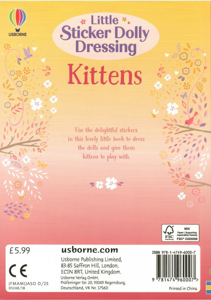 Scenes include feeding time, visiting a cat café, exploring outside and lots more. With over 300 reusable stickers of kittens, outfits and accessories, plus a fold-out back cover to store stickers when not in use.