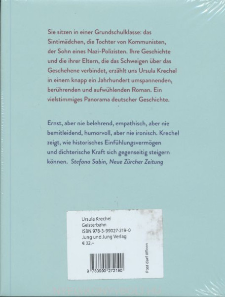 Fast ein Jahrhundert umspannt der Bogen dieses Romans, mit dem Ursula Krechel fortsetzt, was sie, vielfach ausgezeichnet und gefeiert, mit "Shanghai fern von wo" und "Landgericht" begonnen hat. "Geisterbahn" erzählt die Geschichte einer deutschen Familie, der Dorns. Als Sinti sind sie infolge der mörderischen Politik des NS-Regimes organisierter Willkür ausgesetzt: Sterilisation, Verschleppung, Zwangsarbeit. Am Ende des Krieges, das weitgehend bruchlos in den Anfang der Bundesrepublik übergeht, haben sie den Großteil ihrer Familie, ihre Existenzgrundlage, jedes Vertrauen in Nachbarn und Institutionen verloren. Anna, das jüngste der Kinder, sitzt mit den Kindern anderer Eltern in einer Klasse. Wer wie überlebt hat, aus Zufall oder durch Geschick, danach fragt keiner. Sie teilen vieles, nur nicht die Geister der Vergangenheit.