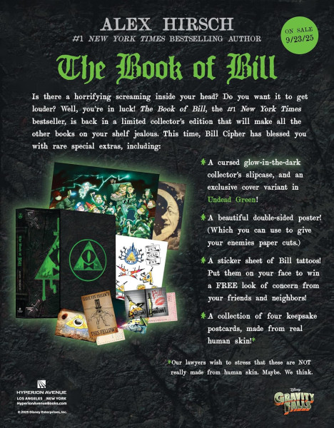 This time, Bill Cipher has blessed you with rare special extras, including:A cursed glow-in-the-dark collector’s slipcase, and an exclusive cover variant in Undead Green!A beautiful double-sided poster!A sticker sheet of Bill tattoos!A collection of four keepsake postcards!