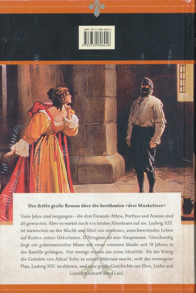 Aber es wartet noch ein letztes Abenteuer auf sie. Ludwig XIV. ist inzwischen an der Macht und führt ein sinnloses, ausschweifendes Leben auf Kosten seiner Untertanen. D'Artagnan ist sein Hauptmann. Gleichzeitig liegt ein geheimnisvoller Mann mit einer eisernen Maske seit 18 Jahren in der Bastille gefangen. Nur wenige wissen um seine Identität. Als der König die Geliebte von Athos' Sohn zu seiner Mätresse macht, reift der verwegene Plan, Ludwig XIV. zu stürzen, und eine große Geschichte um Ehre, Liebe und Loyalität nimmt ihren Lauf.