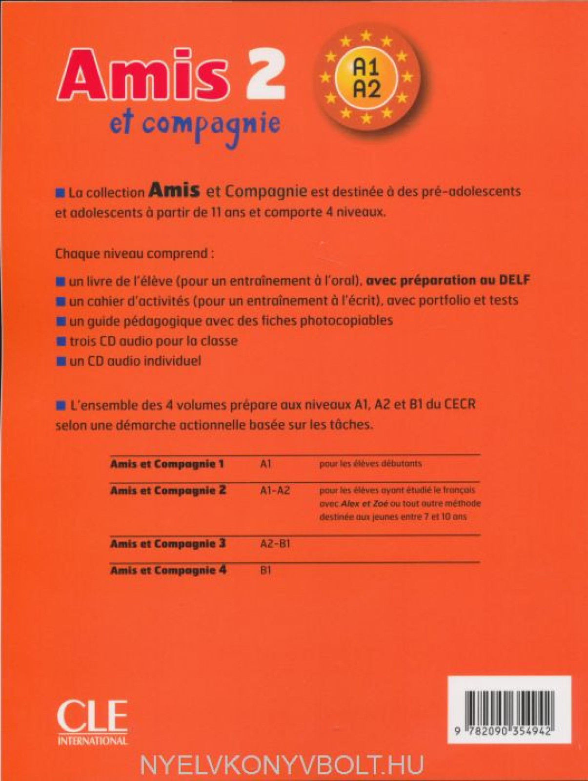 Amis et compagnie 2 propose une réelle continuité pour les éleves qui ont déja abordé le français a l’école élémentaire, que ce soit avec la collection « Alex et Zoé » ou tout autre manuel de français pour enfants.Le deuxieme niveau introduit l’ouvre d’un grand écrivain de langue française (Les Misérables de Victor Hugo) mise en scene en mangas et correspond au niveau A1/A2 du Cadre européen commun de référence pour les langues.Le cahier d’activités d'Amis et compagnie 2 invite régulierement les éleves a la révision, a la récréation (jeux), aux recherches (projets) et a l’auto-évaluation (portfolio).