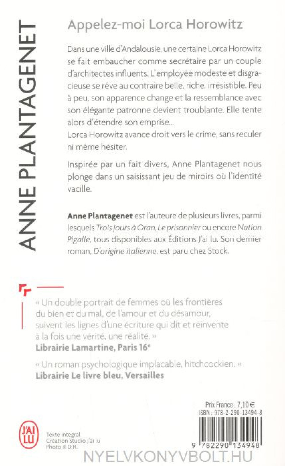Dans une ville d'Andalousie, une certaine Lorca Horowitz se fait embaucher comme secrétaire par un couple d'architectes influents. L'employée modeste et disgracieuse se reve au contraire belle, riche, irrésistible. Peu a peu, son apparence change et la ressemblance avec son élégante patronne devient troublante. Elle tente alors d'étendre son emprise... Lorca Horowitz avance droit vers le crime, sans reculer ni meme hésiter.