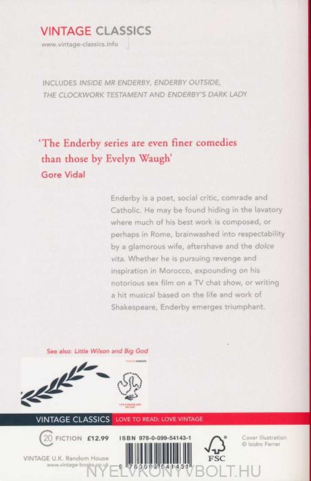 Enderby - poet, social critic, comrade and Catholic - is endlessly hounded by women. He may be found hiding in the lavatory where much of his best work is composed, or perhaps in Rome, brainwashed into respectability by a glamorous wife, aftershave and the dolce vita. But whether he is pursuing revenge and inspiration in Morocco, expounding on his notorious sex film on a TV chat show, or writing a hit musical based on the life and work of Shakespeare, Enderby emerges triumphant.