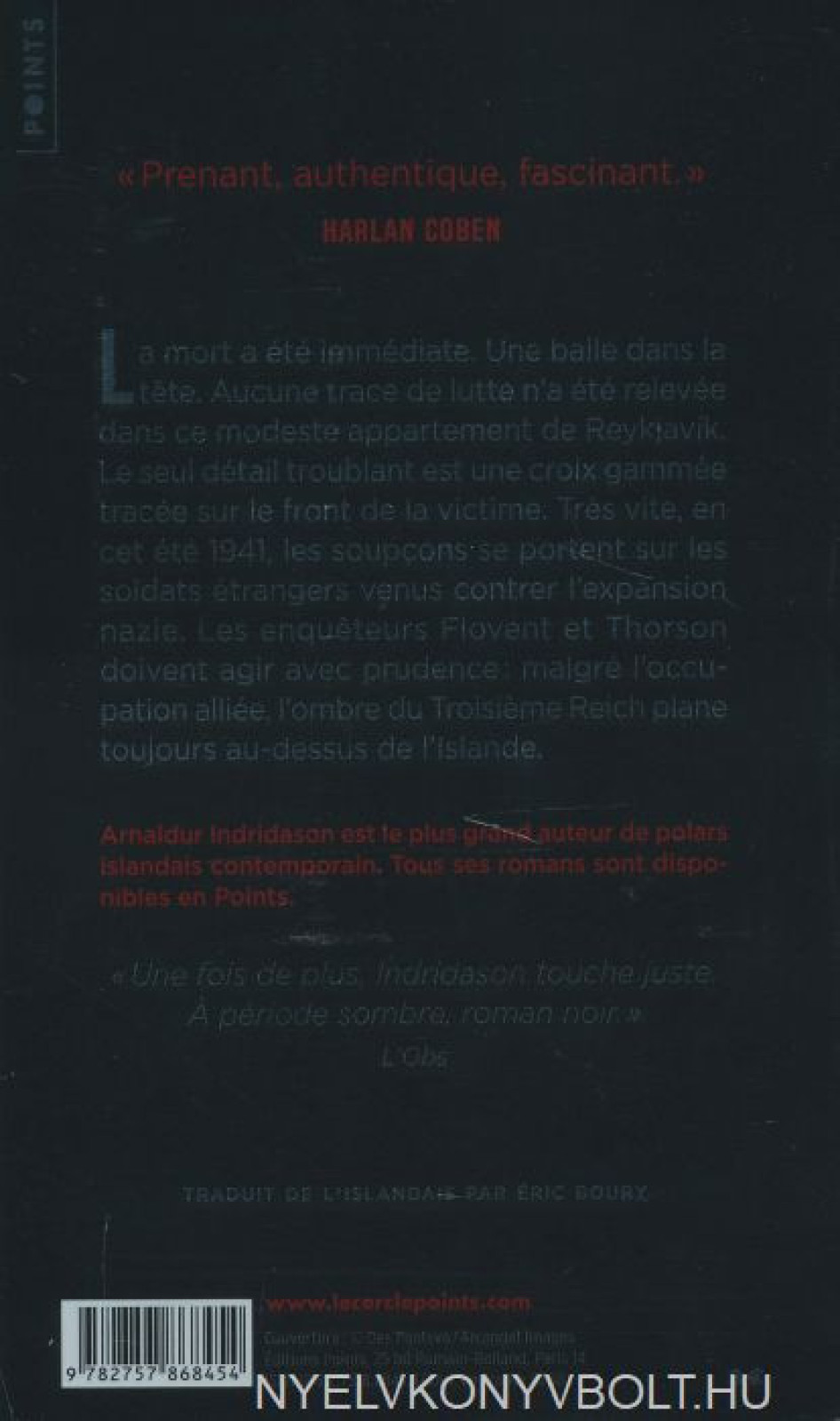 La mort a été immédiate. Une balle dans la tete. Aucune trace de lutte n'est relevée dans ce modeste appartement de Reykjavík. Le seul détail troublant est une croix gammée tracée sur le front de la victime. Tres vite, en cet été 1941, les soupçons se portent sur les soldats étrangers venus contrer l'expansion nazie. Les enqueteurs Flovent et Thorson doivent agir avec prudence : malgré l'occupation alliée, l'ombre du Troisieme Reich plane toujours au-dessus de l'Islande.