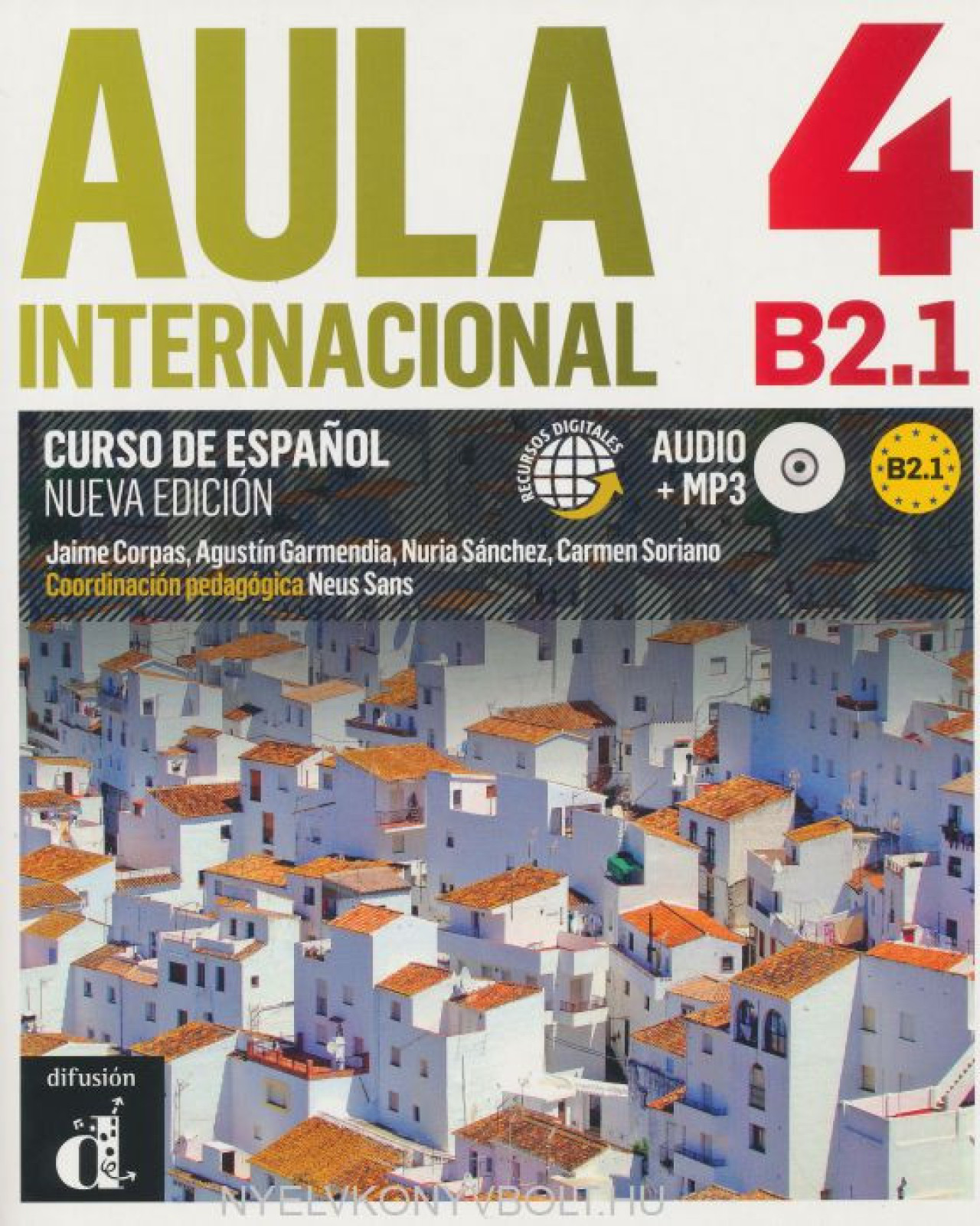 Aula internacional 4 Nueva edición es el curso de espanol orientado a la acción que hace del aula el contexto perfecto para el aprendizaje de la lengua? por su variedad de actividades, que tienen en cuenta los diferentes estilos de aprendizaje por su equilibrio entre el trabajo de comprensión, de producción y de interacción por su tratamiento de la gramática, riguroso y significativo por su lenguaje gráfico claro y atractivo porque ofrece numerosos documentos auditivos porque cada unidad didáctica incorpora un vídeo porque se complementa con una plataforma de recursos digitales Aula internacional 4 Nueva edición es un manual compacto; es decir, en un mismo volumen se incluyen: el libro del alumno el cuaderno de ejercicios (Más ejercicios), un extenso resumen gramatical