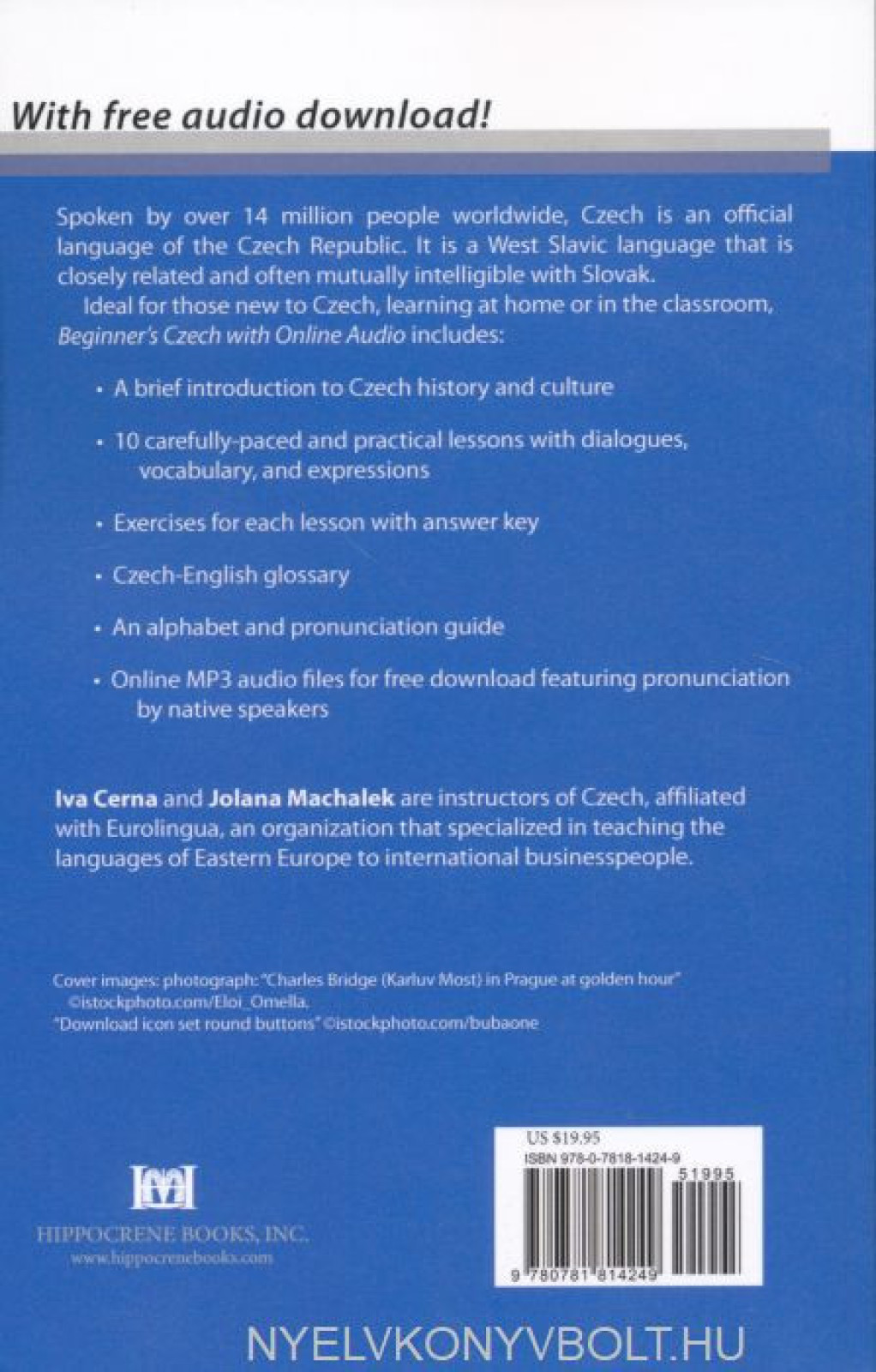 Ideal for those new to Czech, learning at home or in the classroom, Beginner’s Czech with Online Audio includes:A brief introduction to Czech history and culture10 carefully-paced and practical lessons with dialogues, vocabulary, and expressionsExercises for each lesson with answer keyCzech-English glossaryAn alphabet and pronunciation guideOnline MP3 audio files for free download featuring pronunciation by native speakers