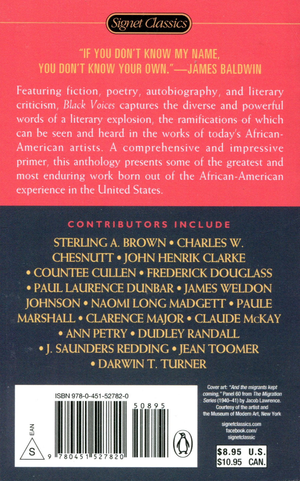 Featuring fiction, poetry, autobiography, and literary criticism, Black Voices captures the diverse and powerful words of a literary explosion, the ramifications of which can be seen and heard in the works of today’s African-American artists.
