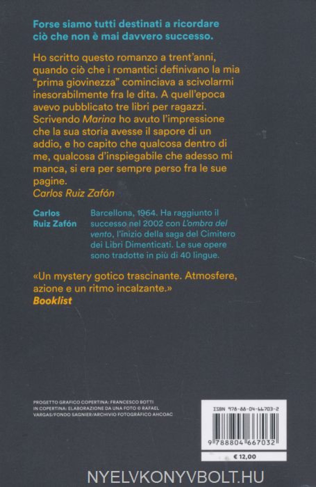 Barcellona, fine anni Settanta. Óscar Drai e un giovane studente che trascorre gli anni della sua adolescenza in un cupo collegio della citta catalana. Colmo di quella dolorosa energia cosi tipica dell'eta, fatta in parti uguali di sogno e insofferenza,Óscar ama allontanarsi non visto dalle soffocanti mura del convitto, per perdersi nel dedalo di vie, ville e palazzi di quartieri che trasudano a ogni angolo storia e mistero. In occasione di una di queste fughe il giovane si lascia rapire da una musicache lo porta fino alle finestre di una casa. All'interno, un antico grammofono suona un'ammaliante canzone per voce e pianoforte. Nel momento in cui sottrae l'oggetto e scappa, e sopraffatto da un gesto che risulta inspiegabile a lui per primo. Qualche giorno dopo tutto gli apparira tanto chiaro quanto splendidamente misterioso. Tornando sui suoi passi per restituire il maltolto, infatti, Óscar incontra la giovane Marina e il suo enigmatico padre, il pittore German. E niente per lui sara piu come prima.