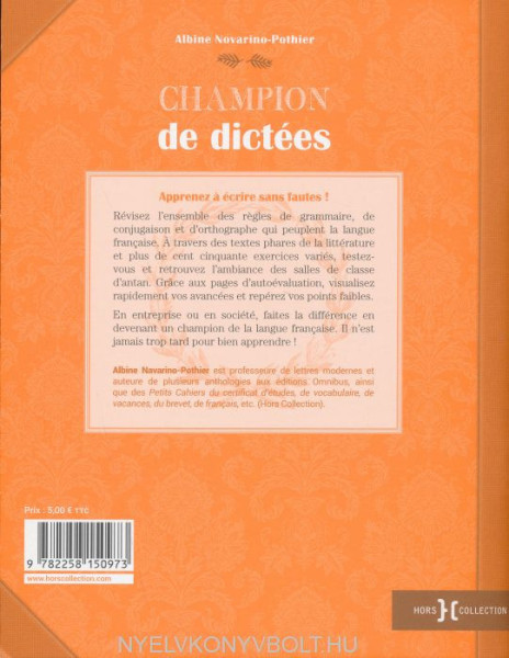 Replongez dans l'ambiance des salles de classe des années 50 grâce a ce petit cahier "Champion de dictées" ludique et instructif a la fois. Profitez de vos temps de pause pour réviser toutes les bases de l'enseignement de l'orthographe. La langue française est magnifique, mais elle est tres difficile a maîtriser. Ce petit cahier vous propose de reprendre tous les fondamentaux en testant vos progres grâce a des pages "bilan" a la fin de chaque chapitre. Une mauvaise orthographe peut vous empecher de décrocher le job de votre vie ou de progresser au sein de votre entreprise. Il n'est jamais trop tard pour bien faire, pour bien apprendre. A vos stylos! Le petit cahier "champion de dictées" est la pour vous aider et vous distraire en meme temps. Illustré de gravures anciennes, de cartes postales, de photos d'époque, ce petit cahier vous permettra d'améliorer vos connaissances et de les tester!