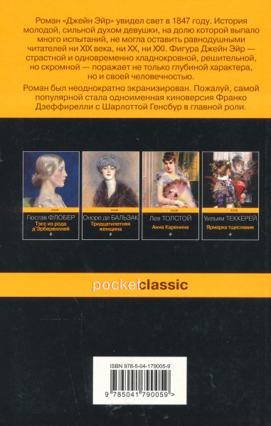 Ljubov, kotoraja ne podvlastna ni vremeni, ni obstojatelstvam, ni udaram sudby. Esli zhizn ne baluet, to mozhno li ee zhdat? Detstvo i junost vospitannitsy pansionata dlja bednykh devochek, Dzhejn Ejr, byli bezradostnymi. Ona vynuzhdena sama zarabatyvatna khleb, i kazhetsja, chto sudba k nej sovsem ne blagosklonna. Vse menjaetsja, kogda ona ustraivaetsja guvernantkoj v pomeste zagadochnogo mistera Rochestera. V ee zhizn prikhodit Bolshaja Ljubov. No spaset ona ee ili pogubit? Geroine predstoit nauchitsja prinimat nelegkie reshenija i delat slozhnyj vybor mezhdu chuvstvom i dolgom, serdtsem i razumom, samopozhertvovaniem i zhiznju. Budet li v kontse etoj pronzitelnoj istorii schastlivyj konets? Chto by ni sluchilos, vera v ljubov i sostradanie, v ljudej i spravedlivost, v chelovecheskoe dostoinstvo i silu dukha pomogut geroine s chestju vyderzhat vse ispytanija.