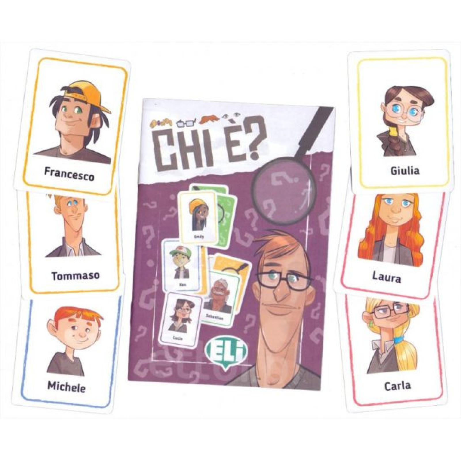 Ogni giocatore pesca una carta dal mazzo verde senza mostrarla ai compagni. A turno ogni giocatore pone delle domande sull'aspetto fisico del personaggio misterioso del compagno che ha accanto, il quale puó rispondere alla domanda solo con un Sí o con un No. La risposta ottenuta permette di acquisire indizi e avvicinarsi sempre piú alla soluzione. Vince chi indovina piú personaggi e conquista piú carte. La guida contiene suggerimenti per utilizzare il gioco in tanti modi diversi.