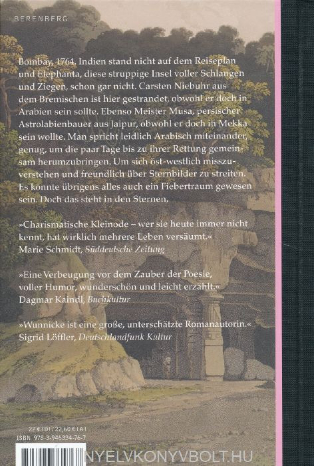 Doch als Forschungsreisenden in Sachen »biblischer Klarheit« zieht es einen eben an die merkwürdigsten Orte. Carsten Niebuhr aus dem Bremischen ist hier gestrandet, obwohl er doch in Arabien sein sollte. Ebenso Meister Musa, persischer Astrolabienbauer aus Jaipur, obwohl er doch in Mekka sein wollte. Man spricht leidlich Arabisch miteinander, genug, um die paar Tage bis zu ihrer Rettung gemeinsam herumzubringen. Um sich öst-westlich misszuverstehen und freundlich über Sternbilder zu streiten (denn wo der eine eine Frau erkennt, sieht der andere lediglich deren bemalte Hand). Es könnte übrigens alles auch ein Fiebertraum gewesen sein. Doch das steht in den Sternen.