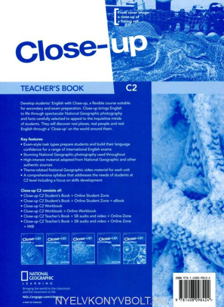 Close up is still as interesting, topical and up to date as ever with spectacular National Geographic photography and facts that have been carefully selected to appeal to the inquisitive minds of young teenagers.New to this Edition:• The integrated 'Exam Close up' feature now gives students and teachers step by step advice and strategies for how best to approach exam tasks so students have an opportunity to put the advice into practise on the page• A new 'Learning Focus' feature introduces 'learning to learn' tips so students can see what they need to do themselves outside of the classroom to progress• Students' abilities to think, form, express and justify personal opinions are developed further in the 'Ideas Focus' sections, a core skill for success at First• An all new Online Zone contains downloadable audio and video for students and teachers as well as additional material including interactive whiteboard material, tests and quizzes.