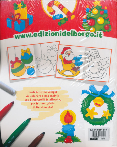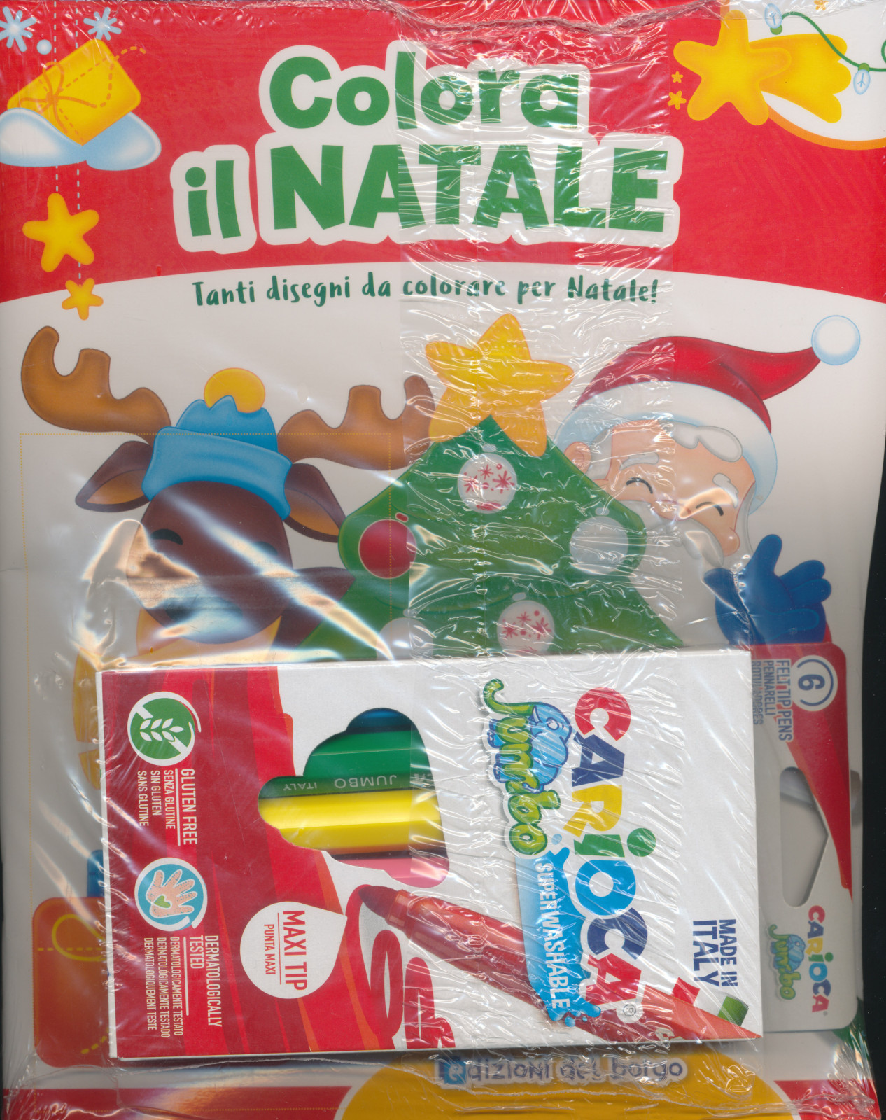 Un albo da colorare in cui sono presenti tutti i soggetti natalizi piu amati da bambine e bambini (a sinistra il modello colorato e a destra il disegno da colorare). Un libro per divertirsi ovunque ci si trovi, grazie alla scatola di sei pennarelli Jumbo Carioca a punta grossa in dotazione. Eta di lettura: da 4 anni.