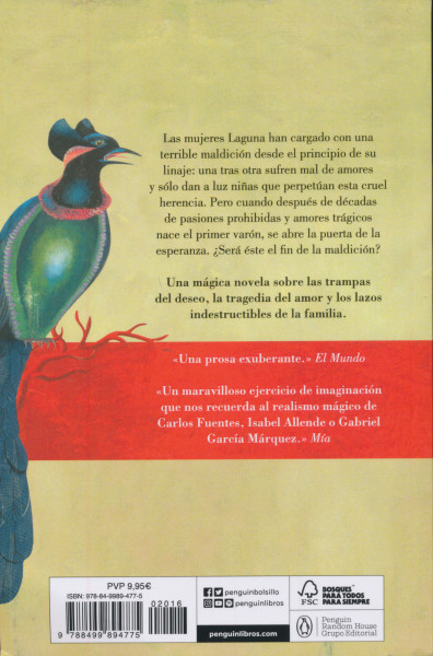 Las mujeres Laguna han cargado con una terrible maldición desde el principio de su linaje: una tras otra sufren mal de amores y sólo dan a luz ninas que perpetúan esta cruel herencia. Pero cuando después de décadas de pasiones prohibidas y amores trágicos nace el primer varón, se abre la puerta de la esperanza. ?Será este el fin de la maldición?La crítica ha dicho...«Un maravilloso ejercicio de imaginación que nos recuerda al realismo mágico de Carlos Fuentes, Isabel Allende o Gabriel García Márquez.»Mía
