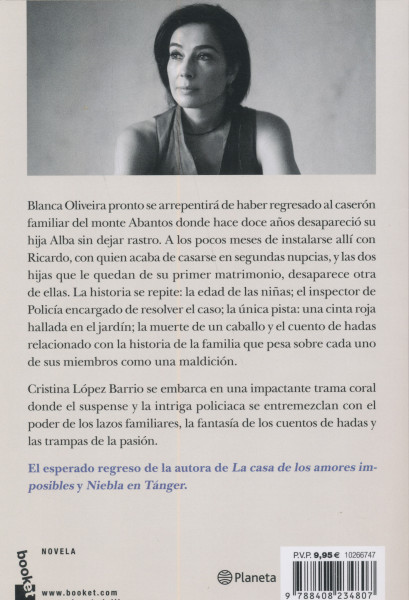 Blanca Oliveira pronto se arrepentirá de haber regresado al caserón familiar del monte Abantos donde hace trece anos desapareció su hija Alba sin dejar rastro. A los pocos meses de instalarse allí con Ricardo, con quien acaba de casarse en segundas nupcias, y las dos hijas que le quedan de su primer matrimonio, desaparece otra de ellas. La historia se repite: la edad de las ninas; el inspector de policía encargado de resolver el caso; la única pista: una cinta roja hallada en el jardín; la muerte de uncaballo y el cuento de hadas relacionado con la historia de la familia que pesa sobre cada uno de sus miembros como una maldición.