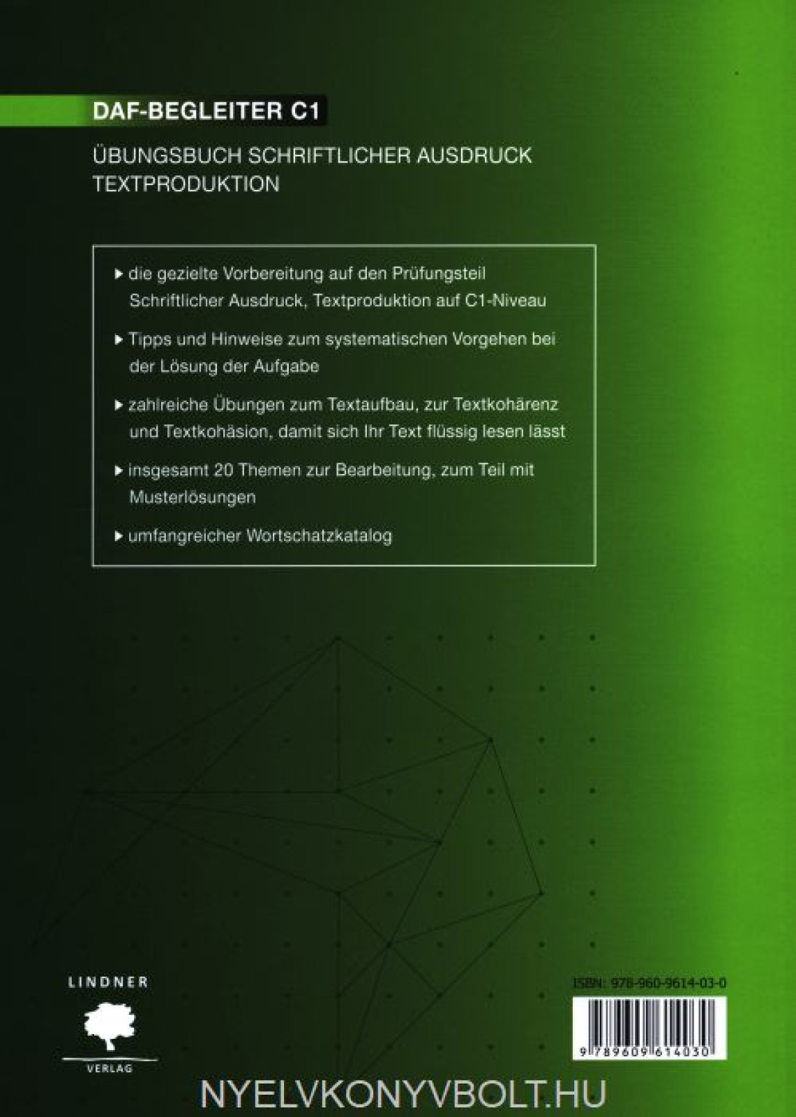 Lernen kommt vor dem Testen! Der DaF-Begleiter C1 (Schriftlicher Ausdruck und Textproduktion) trainiert als einziges Lehrwerk mit dem Lerner systematisch Aufbau und Verfassen eines Aufsatzes auf dem Niv.C1(Goethe C1,TestDaF,DSH).
