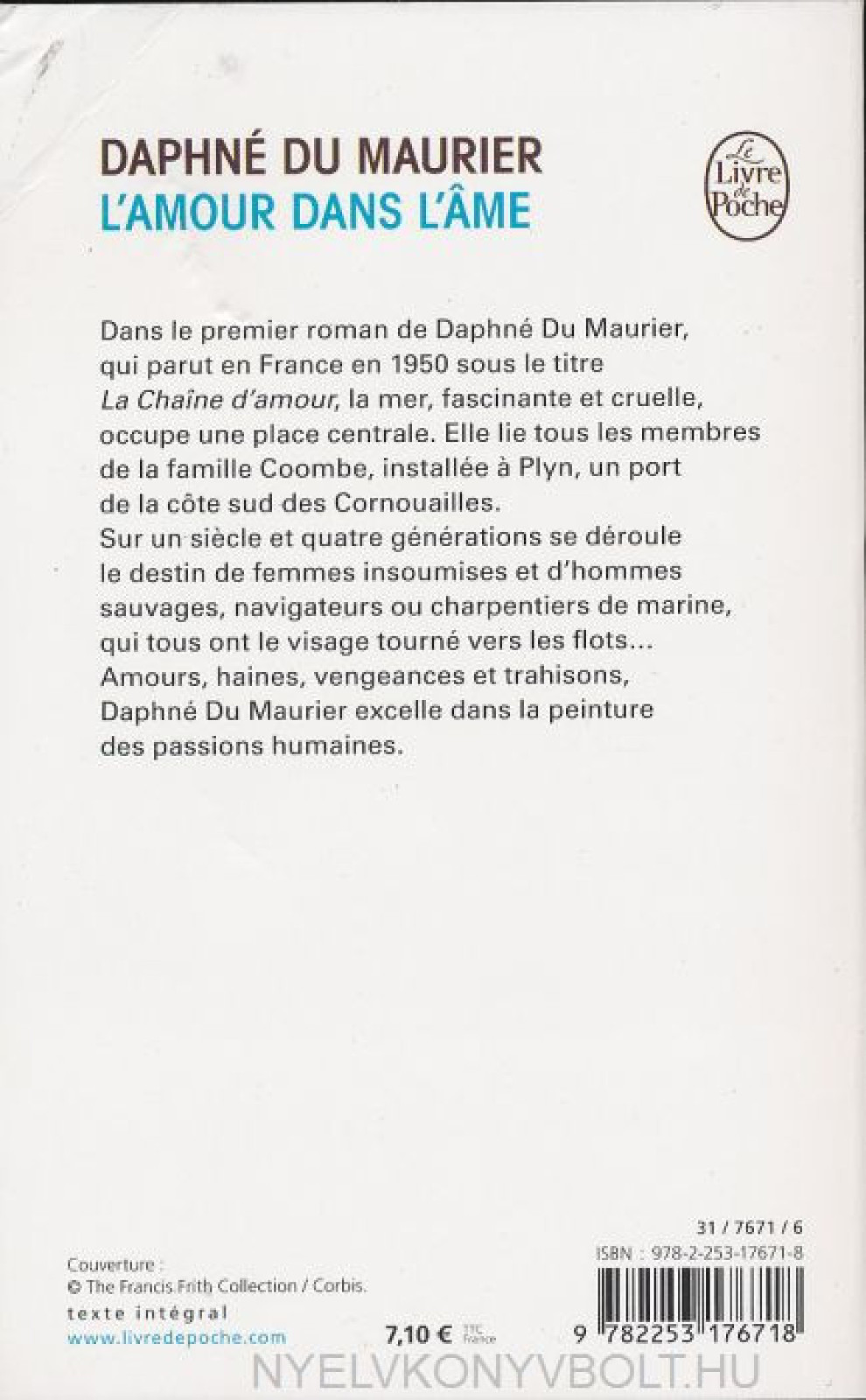 Dans le premier roman de Daphné du Maurier, qui parut en France en 1950 sous le titre La Chaîne d’amour, la mer, fascinante et cruelle, occupe une place centrale. Elle lie tous les membres de la famille Coombe, installée a Plyn, un port de la côte sud des Cornouailles ; sur un siecle et quatre générations, se déroule le destin de femmes insoumises et d’hommes sauvages, navigateurs ou charpentiers de marine, qui tous ont le visage tourné vers les flots… Amours, haines, vengeances et trahisons, Daphné duMaurier excelle dans la peinture des passions humaines.