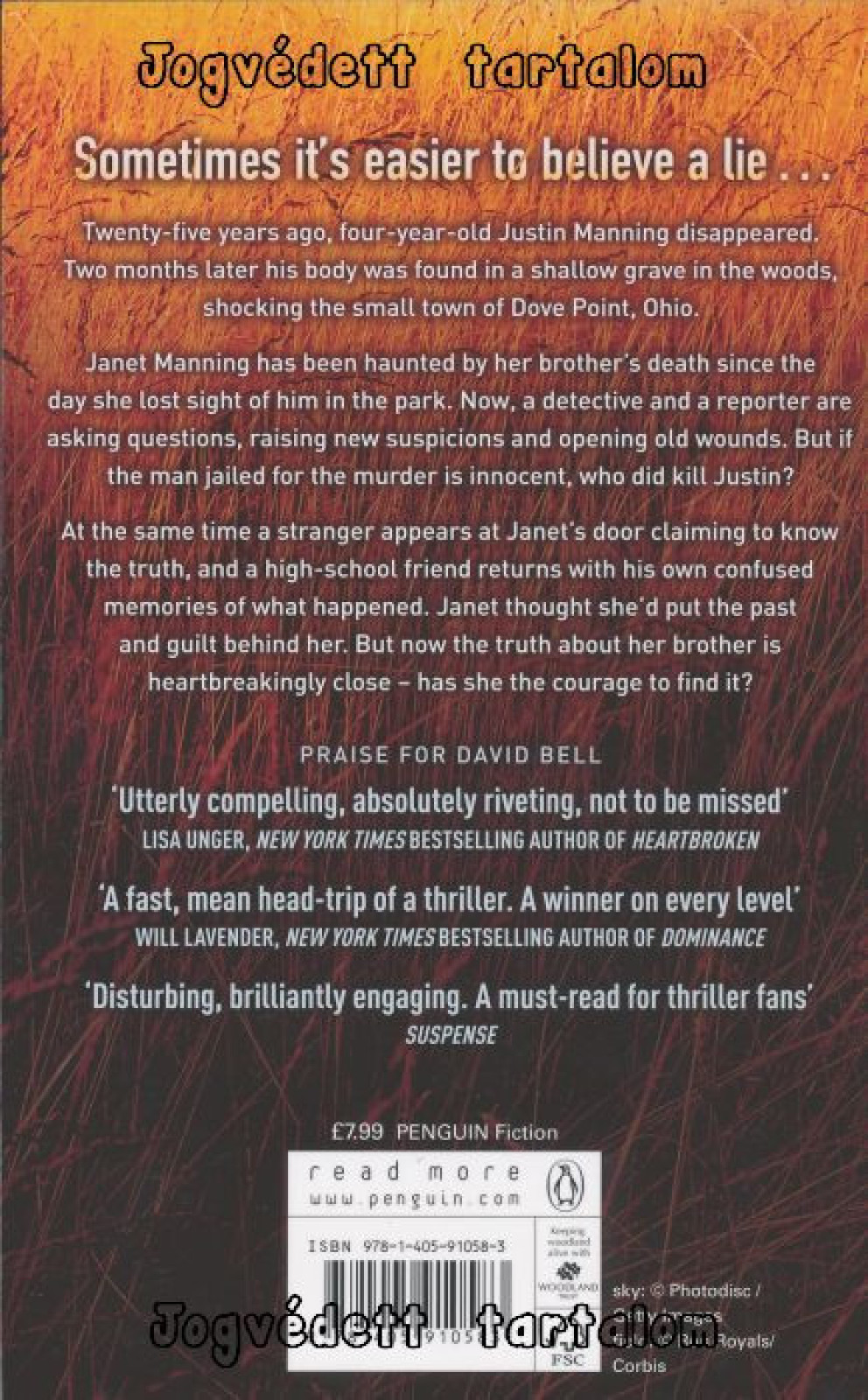 Twenty-five-years ago, four-year-old Justin Manning disappeared. Two months later his body was found in a shallow grave in the woods, shocking the small town of Dove Point, Ohio.Janet Manning has been haunted by her brother's death since the day she lost sight of him in the park. Now, a detective and a reporter are asking questions, raising new suspicions and opening old wounds. But if the man jailed for the murder is innocent, who did kill Justin?At the same time a stranger appears at Janet's doorclaiming to know the truth and a high school friend returns, with his own confused memories of what happened. Janet thought she'd put the past and guilt behind her. But now the truth about her brother is heartbreakingly close - has she the courage to find it?