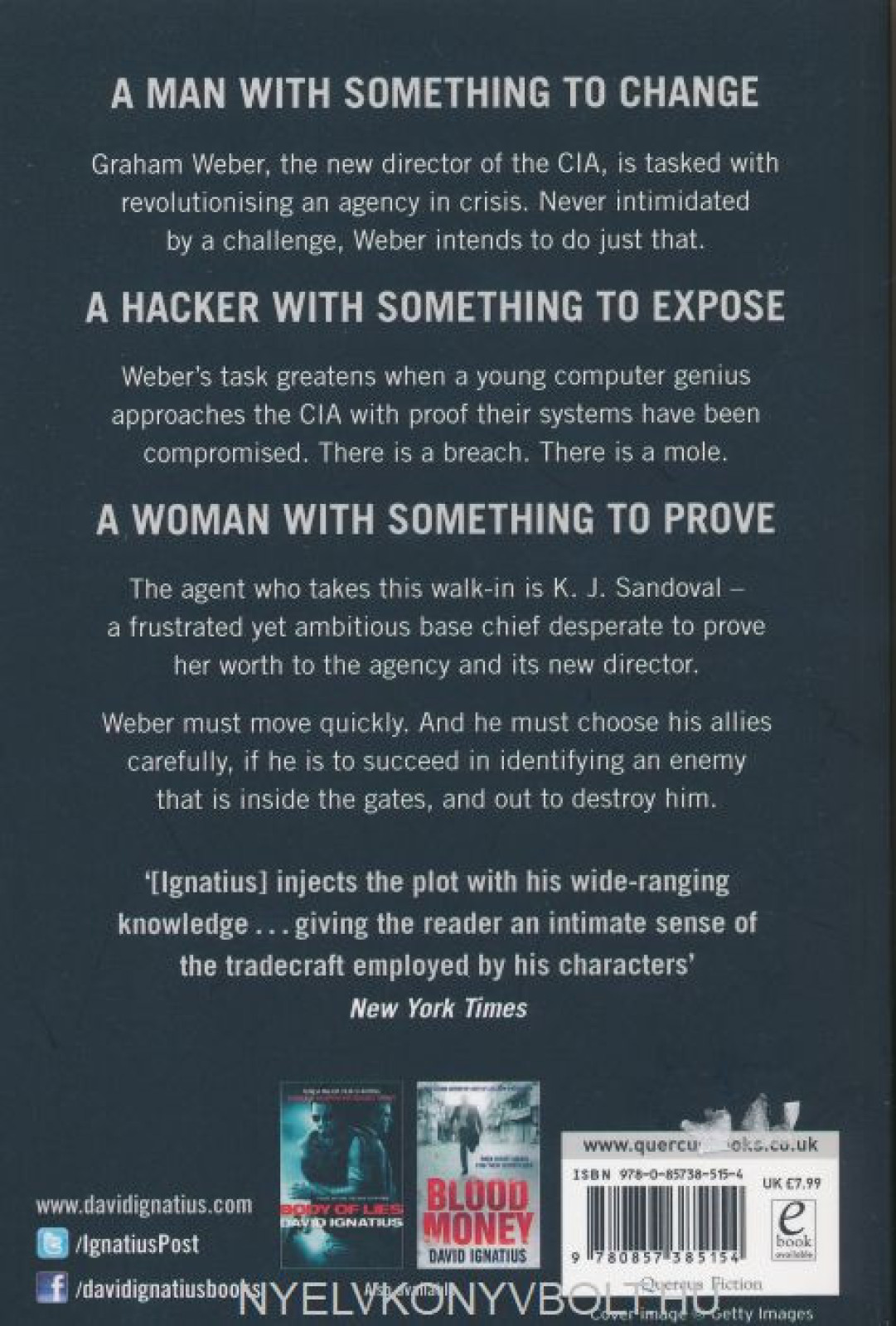 A hacker with something to expose: Weber's task greatens when a young computer genius approaches the CIA with proof their systems have been compromised. There is a breach. There is a mole. A woman with something to prove: The agent who takes this walk-in is K. J. Sandoval - a frustrated yet ambitious base chief desperate to prove her worth to the agency and its new director.Weber must move quickly. And he must choose his allies carefully, if he is to succeed in identifying an enemy that is inside thegates, and out to destroy him.