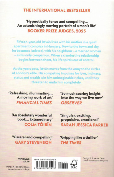 Fifteen-year-old István lives with his mother in a quiet apartment complex in Hungary. New to the town and shy, he becomes isolated, with his neighbour – a married woman – as his only companion. When a clandestine relationship begins between them, his life spirals out of control.As the years pass, István moves from the army to the circles of London’s elite. His competing impulses for love, intimacy, status and wealth win him unimaginable riches, until they threaten to undo him completely.