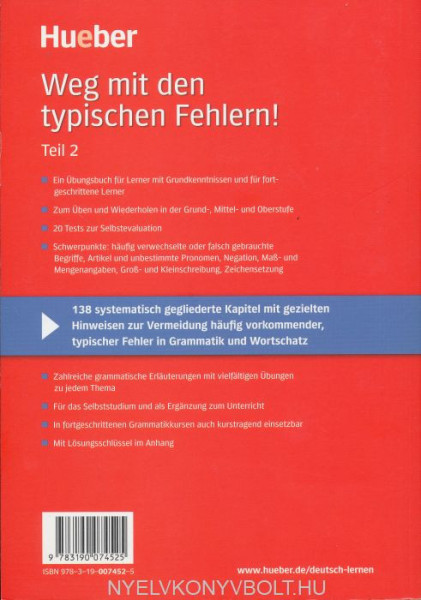 138 systematisch gegliederte Kapitel mit gezielten Hinweisen zur Vermeidung häufig vorkommender, typischer Fehler in Grammatik und Wortschatz. Für das Selbststudium bestens geeignet.