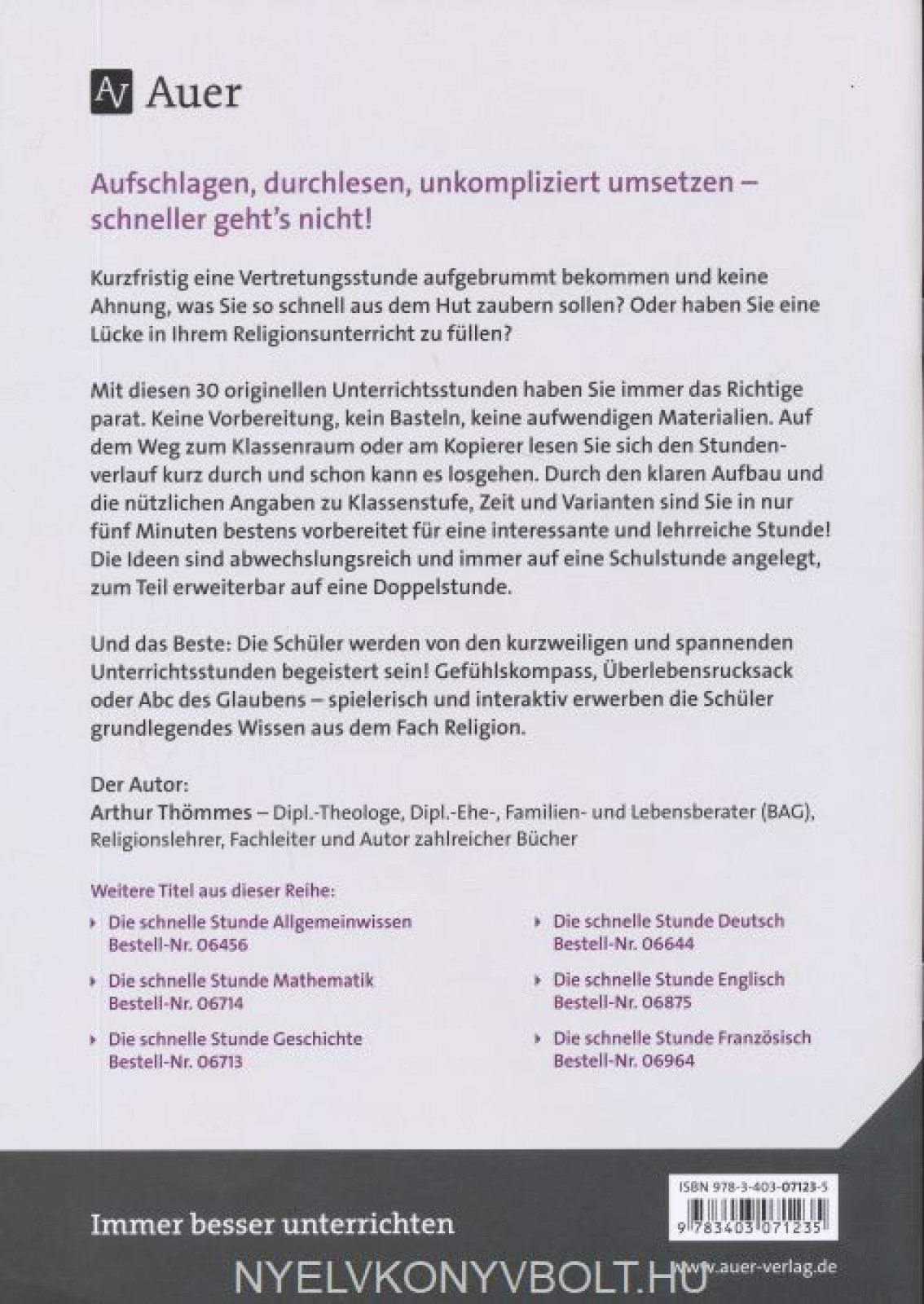 Es kommt im Unterrichtsalltag immer wieder vor, dass Stunden schnell mit sinnvollem Inhalt gefüllt werden wollen, sei es aufgrund einer kurzfristigen Vertretungsstunde oder zum Auffüllen einer Lücke in der eigenen Planung. Hier leisten die schnellen Stunden Religion dieses Bandes gute Dienste!