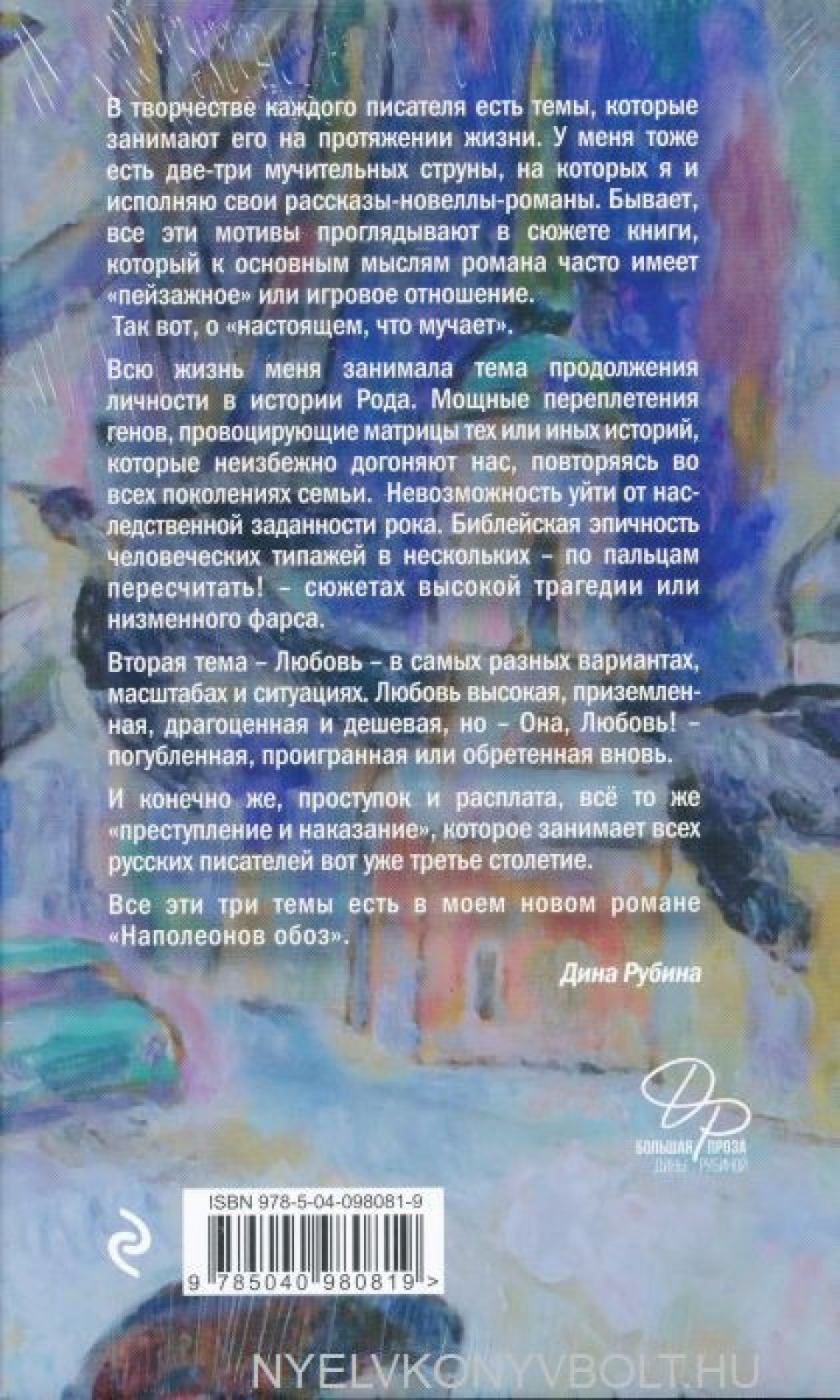 Novyj dolgozhdannyj roman Diny Rubinoj "Napoleonov oboz" sostoit iz 3-kh knig. Pervaja - "Rjabinovyj klin" - zavjazka sagi.