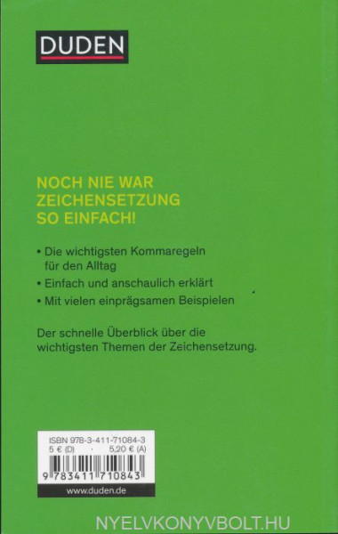 Noch nie war Zeichensetzung so einfach. Die Dudenredaktion leistet mit diesem Band schnelle Hilfe und erklärt einfach und anschaulich die wichtigsten Zeichensetzungsregeln. Mit vielen einprägsamen Beispielen und seiner guten Übersichtlichkeit ist dieserBand ein echter Helfer für den Alltag.