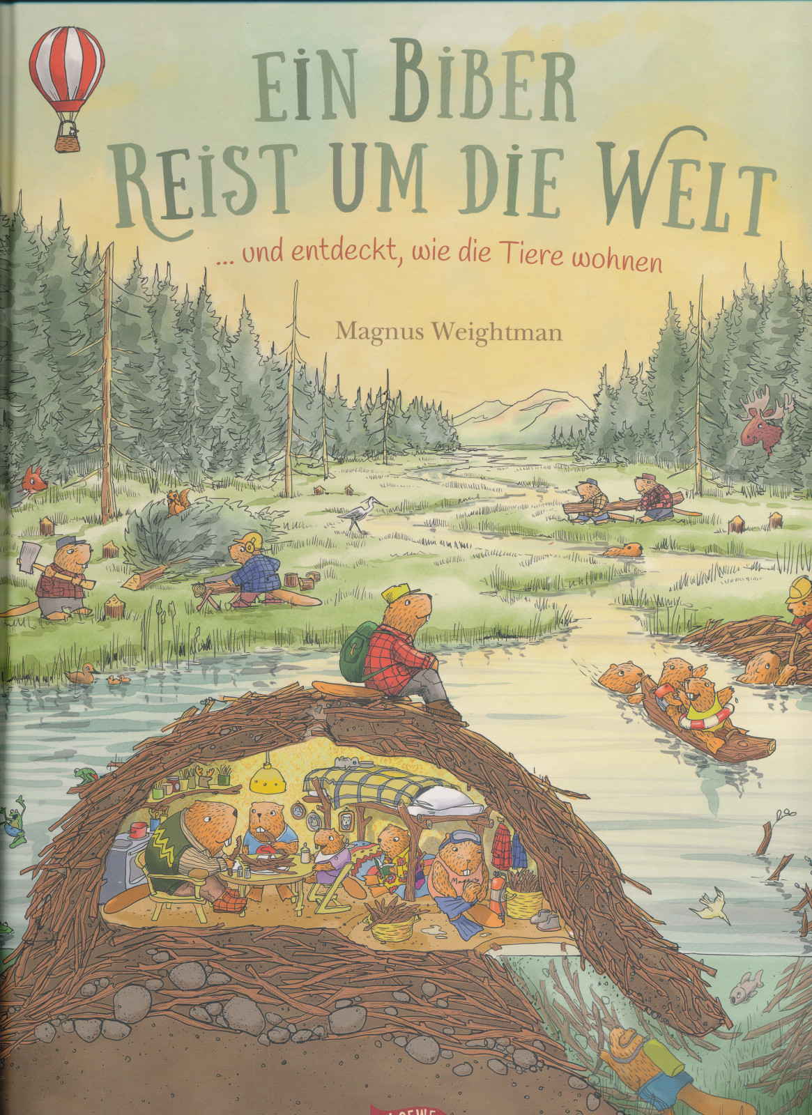 Zusammen mit dem Hund Akita reist Biber um die ganze Welt und lernt dabei, wie die einzelnen Tiere wohnen und wie unterschiedlich ihre Behausungen aussehen. So sind die Höhlen der Eisbären tief unter der dicken Schneedecke versteckt, während die Bienen hoch oben in ihrem Bienenstock leben, die Zwergmaus baut sich ein Kugelnest aus Grashalmen und Stroh und der Einsiedlerkrebs trägt sein Zuhause auf dem Rücken.Ein farbenfrohes Bilderbuch mit Wimmel-Charakter, das zum Staunen und Entdecken einlädt.Illustrator und Architekt Magnus Weightman nimmt kleine Tierfreunde ab 3 Jahren mit auf eine spannende Entdeckungsreise um die ganze Welt und zeigt, wie unterschiedlich die einzelnen Tiere leben und ihre Behausungen bauen. Mit animierenden Reimen und farbenfrohen, wimmeligen und detailverliebten Bildern!