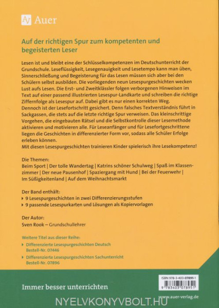 Der Band enthält:<Enter><Enter>- 9 Lesespurgeschichten in zwei Differenzierungsstufen <Enter>- 9 passende Lesespurlandkarten und Lösungen als Kopiervorlagen
