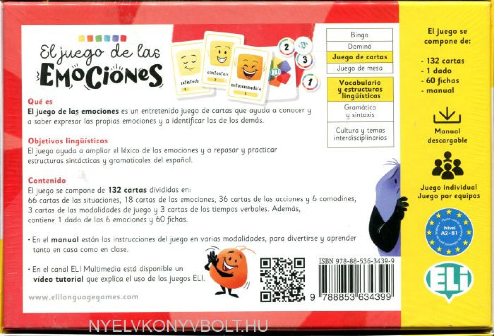 El juego ayuda a ampliar el léxico de las emociones y a repasar ypracticar estructuras sintácticas y gramaticales del espanol.