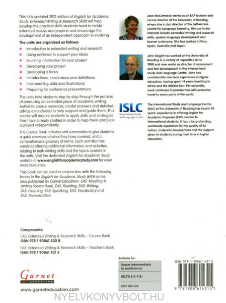 English for academic study: Extended Writing & Research Skills takes students step by step through the process of producing an extended piece of academic writing, helping them to develop the writing and research skills necessary for the task.