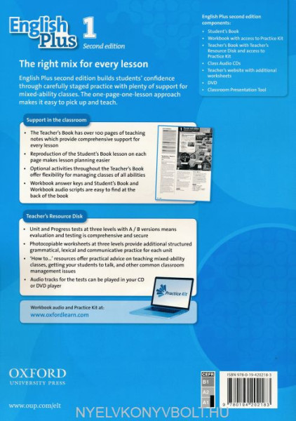 With English Plus, every student can practise at the right level for them, and achieve success. You'll find graded Workbook activities, photocopiable worksheets and tests, plus fast finisher exercises to stretch stronger learners. The extra Options lessons allow you to match the course to your students' interests. Choose from Extra Listening & Speaking, Curriculum Extra, Culture, Project, and new Song pages.Key Features:• 80% new content• More video, with 2 clips in every unit, plus more in theOptions lessons• NEW grammar animations make rules and structures more memorable• NEW Puzzles and Games page in every unit brings more fun into lessons!• Optional Extra Listening & Speaking, Curriculum Extra, Culture, Project, and new Song pages allow you to match the course to your students' interests