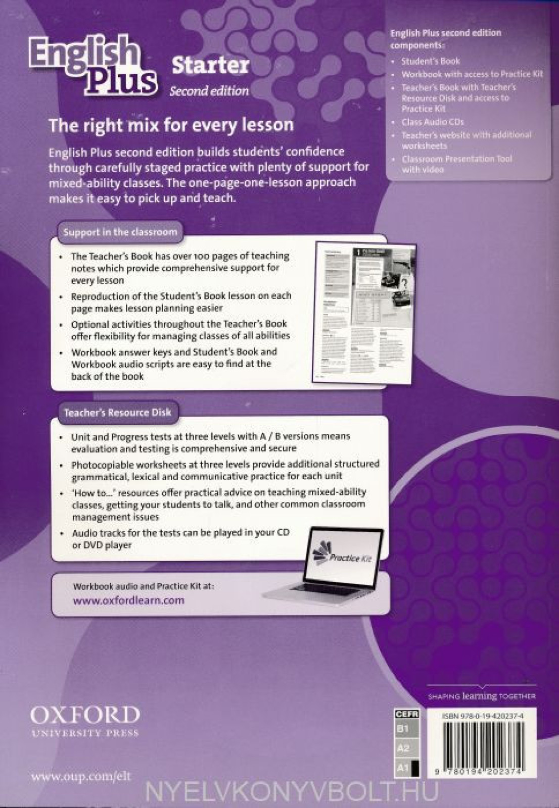 With English Plus, every student can practise at the right level for them, and achieve success. You'll find graded Workbook activities, photocopiable worksheets and tests, plus fast finisher exercises to stretch stronger learners. The extra Options lessons allow you to match the course to your students' interests. Choose from Extra Listening & Speaking, Curriculum Extra, Culture, Project, and new Song pages.Key Features:• 80% new content• More video, with 2 clips in every unit, plus more in theOptions lessons• NEW grammar animations make rules and structures more memorable• NEW Puzzles and Games page in every unit brings more fun into lessons!• Optional Extra Listening & Speaking, Curriculum Extra, Culture, Project, and new Song pages allow you to match the course to your students' interests
