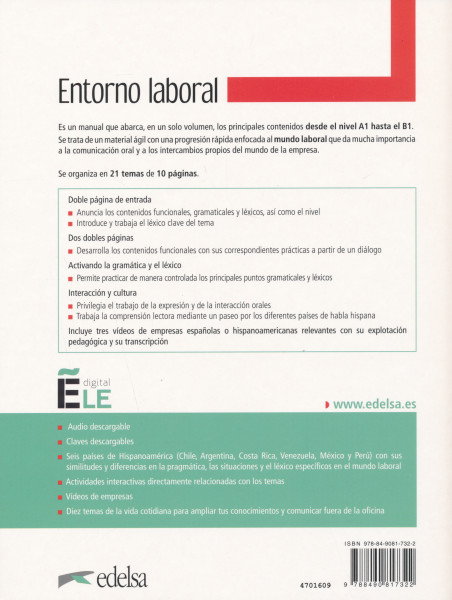 Manual de Espanol Lengua Extranjera enfocado al mundo laboral. Abarca, en un solo volumen, los principales contenidos desde el nivel A1 hasta el B1. Edición nueva y ampliada.