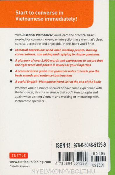 Perfect for business people or tourists traveling to Vietnam, or for students who want to supplement their learning, this book's easy indexing feature allows it to act as a Vietnamese phrasebook or an English–Vietnamese Dictionary. A clever "point to" feature allows you to simply point to a phrase translated in Vietnamese without the need to say a single word or read a single character.