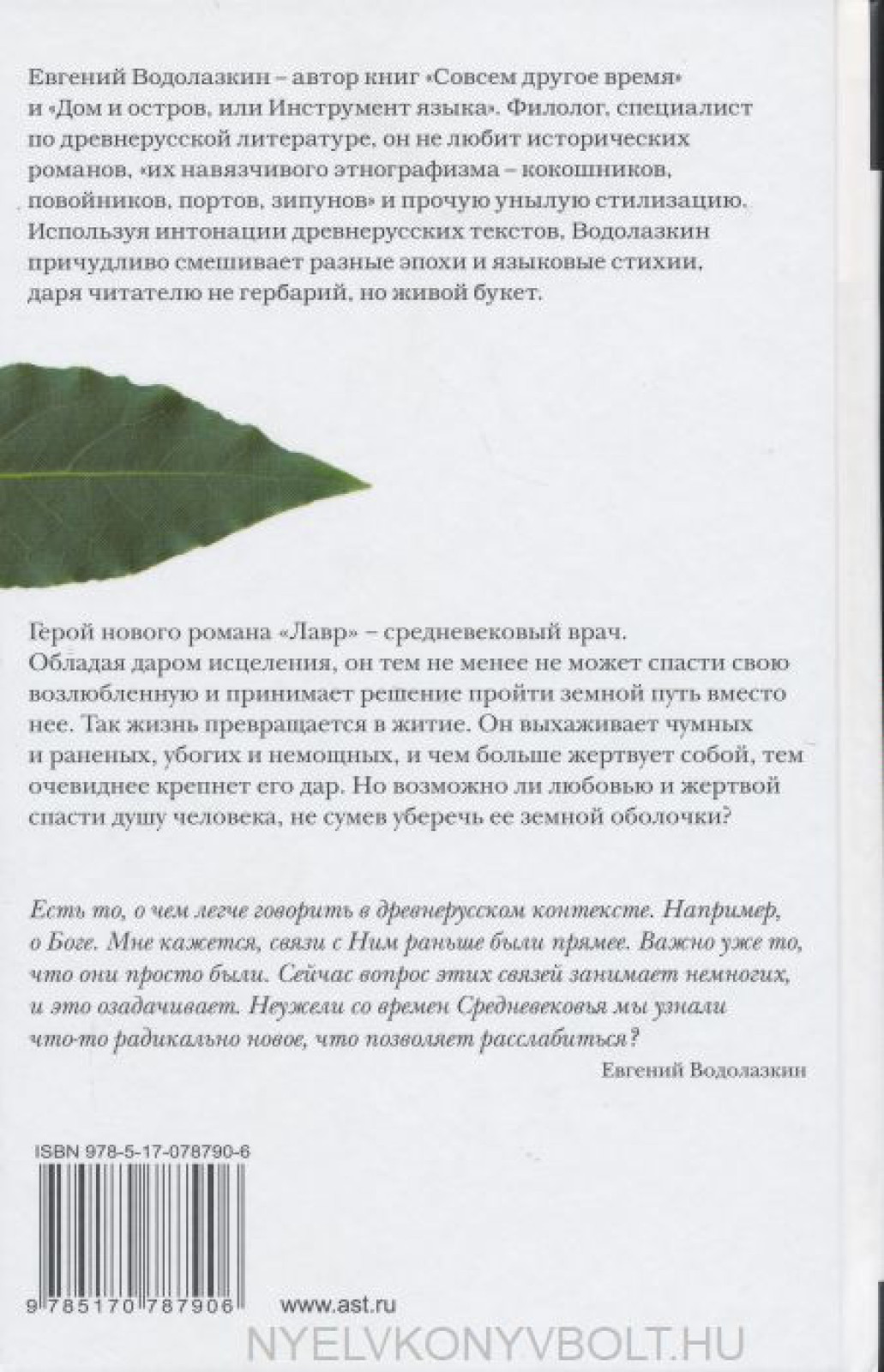 Geroj novogo romana "Lavr" - srednevekovyj vrach. Obladaja darom istselenija, on tem ne menee ne mozhet spasti svoju vozljublennuju i prinimaet reshenie projti zemnoj put vmesto nee.