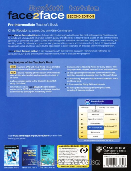 For busy teachers who want to get their students really communicating, face2face is the flexible, easy-to-teach General English course that helps adults and young adults to speak and listen with confidence. Unlike other courses, face2face is informed byCambridge English Corpus and its vocabulary syllabus has been mapped to the English Vocabulary Profile, meaning students learn the language they really need to know at each CEFR level. What's more, face2face actually teaches students to listen better bydrawing their attention to the elements of spoken English that make it so hard for them to understand. And by giving students time to formulate the ideas and language they want to use before they speak, face2face helps to build both spoken fluency and accuracy.