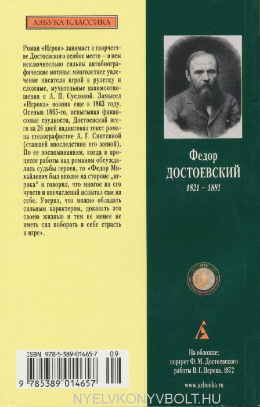 Roman "Igrok" zanimaet v tvorchestve F.M.Dostoevskogo osoboe mesto - v nem iskljuchitelno silny avtobiograficheskie motivy: mnogoletnee uvlechenie pisatelja igroj v ruletku i slozhnye, muchitelnye vzaimootnoshenija s A.P.Suslovoj.