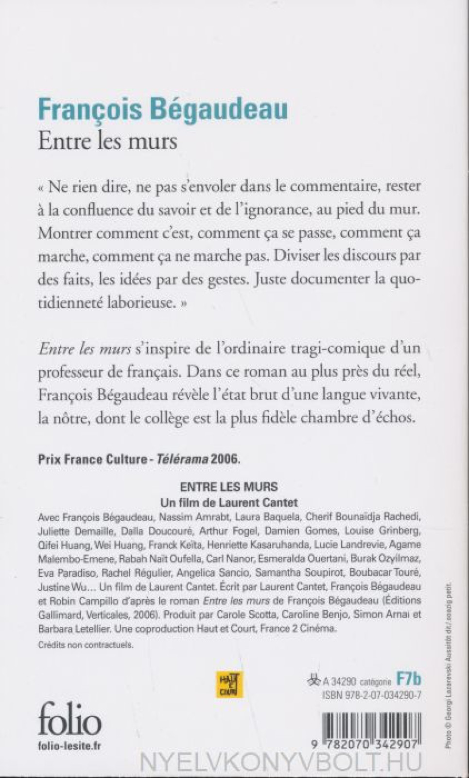 Ne rien dire, ne pas s'envoler dans le commentaire, rester a la confluence du savoir et de l'ignorance, au pied du mur. Montrer comment c'est, comment ça se passe, comment ça marche, comment ça ne marche pas. Diviser les discours par des faits, les idées par des gestes. Juste documenter la quotidienneté laborieuse. Entre les murs s'inspire de l'ordinaire tragi-comique d'un professeur de français. Dans ce roman écrit au plus pres du réel, François Bégaudeau révele et investit l'état brut d'une langue vivante, la nôtre, dont le college est la plus fidele chambre d'échos.